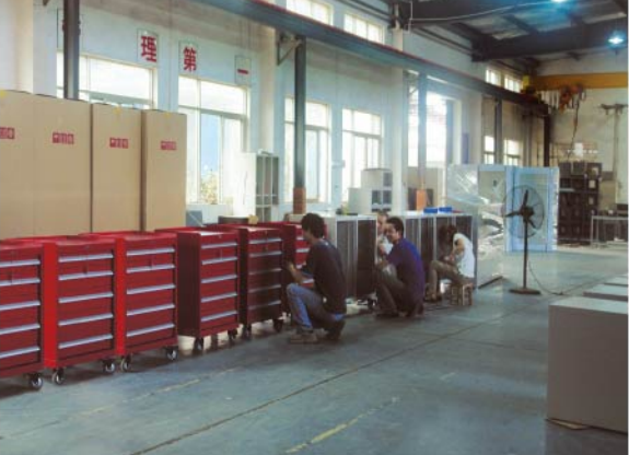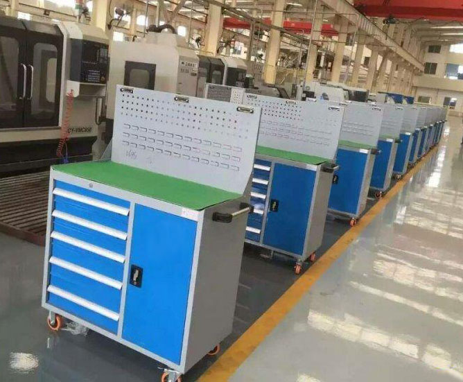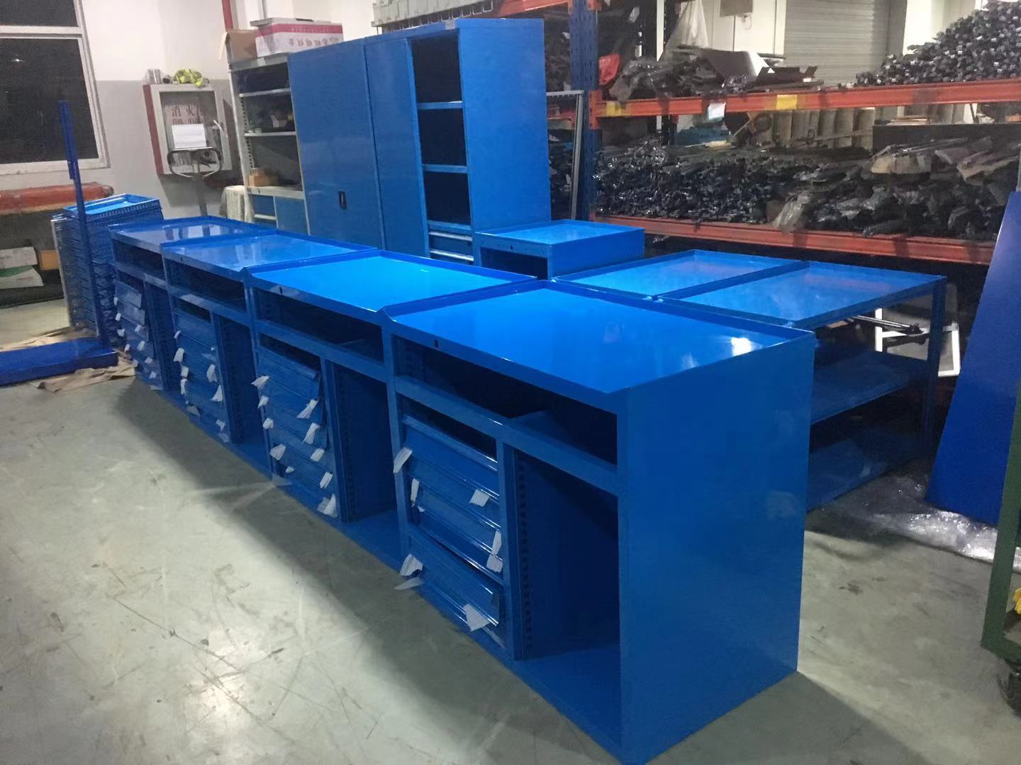 工具車適用于工具、刀具、零部件在生產(chǎn)現(xiàn)場中的定置管理,使您的物品存取工作真正做到準時、準確、高效、低耗。 結(jié)構(gòu)特點 編輯 1、 高強度的結(jié)構(gòu)設計和噴粉表面處理工藝,能適應工廠較復雜的工作環(huán)境。 2、 裝有優(yōu)質(zhì)軸承和導軌,保證抽屜承受額定載荷時亦能輕松順暢開合。 3、 根據(jù)需要可自由選擇配置不同高度的抽屜,充分滿足生產(chǎn)現(xiàn)場的需要。 4、 可以配置帶有防油膠墊的頂框,保護放置物品不受損害以及防止物品滑落。 5、 鎖具先進,只用一把鎖就能鎖上所有的抽屜,保證物品安全。 6、 柜體底部配有墊腳,保護柜體在放置或移動時不受損壞,方便用叉車搬運。 多種表面顏色,滿足生產(chǎn)現(xiàn)場整體布置的需求 7. 全寬型鋁合金抽屜把手及可更換的標簽,美觀、方便、實用。 8. 先進的抽屜安全扣設計,保證抽屜在關(guān)閉后不會意外滑出。 9. 更有4種國際標準色以供選擇(ral5005,ral5015,ral6011,ral7035),滿足生產(chǎn)現(xiàn)場整體布置的需要。 10. 采用國際先進水平鎖具,只一把鎖就能鎖上所有抽屜,保證物品安全。 11. 加底框及高品質(zhì)的腳輪,推行平穩(wěn),方向性好,剎車固定后不會滑動。 12. 先進的互鎖裝置,在打開一個抽屜時其他抽屜自動鎖死不能打開,防止抽屜全部打開造成柜體傾斜。 13.工具車的工作臺面采用獨特的注塑成型,強度更高。 14.中央鎖采用環(huán)形鎖匙結(jié)構(gòu),可延長鎖的使用壽命。 15.工具車四角都配有新型復合材料制成的防撞條,能有效的緩沖意外碰撞造成的損害。 16.工具車的重型車輪,125MM直徑更容易跨越障礙物。 17.臺面有特殊的小凹槽,可用來盛放黃油等液體,方便使用。 18.工具車抽屜內(nèi)可以存放豐富的工具模塊。 19.抽屜兩側(cè)采用疊加式滾珠滑軌,具有優(yōu)秀的順暢度。 20.工具車的每個抽屜擁有自鎖功能。 21.工具車兩側(cè)采用網(wǎng)孔板內(nèi)加鋼板的雙層鋼板設計,使車體更加堅固,持久耐用。 工具車與工具柜的區(qū)別 工具車是可以移動的工具柜,適合在生產(chǎn)現(xiàn)場安全、合理地運送工具和配件。 工具車由各種型號的工具柜增加頂柜和腳輪等移動部件組成。 工具車的外型尺寸的高度:重型工具車為所選用的工具柜的高度加上140mm;輕型工具車為所造工具柜高度加上80mm。高強度的結(jié)構(gòu)設計和陰極電泳底漆表面處理工藝,能適應工廠較復雜的工作環(huán)境。