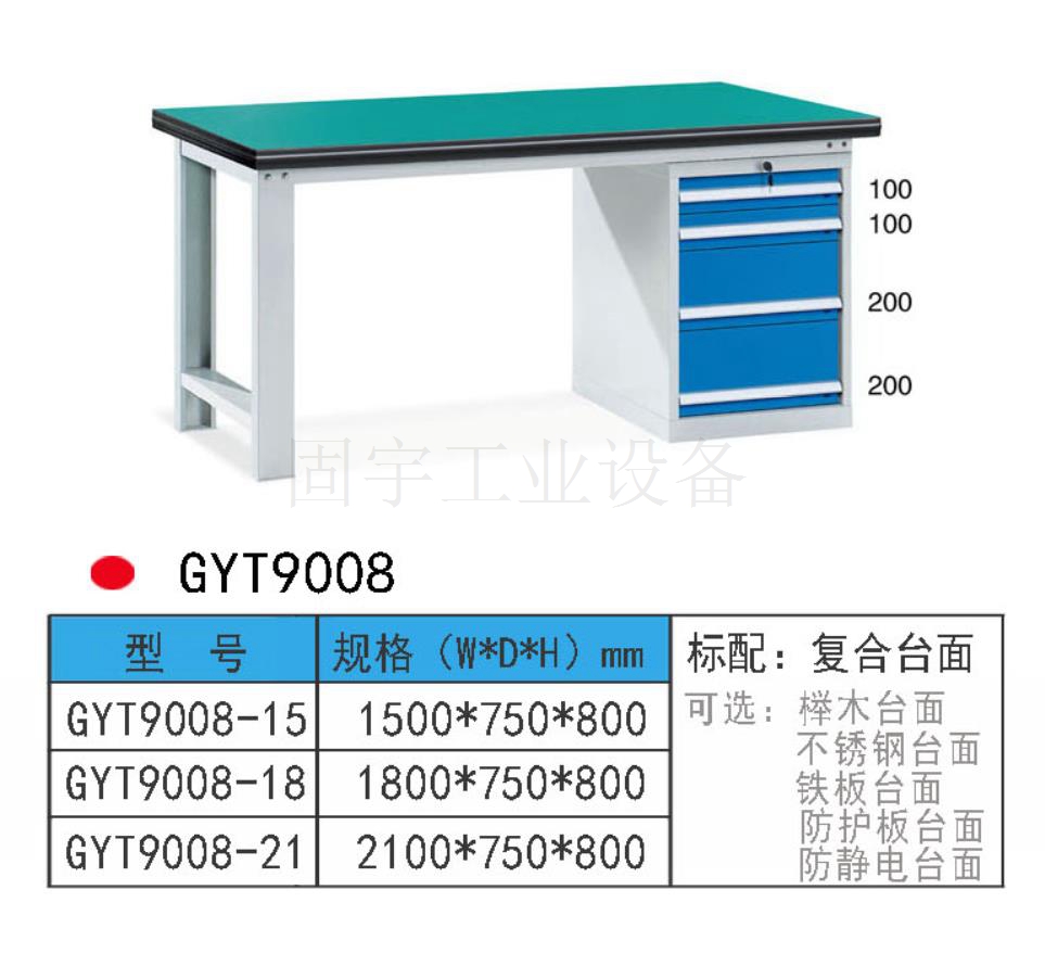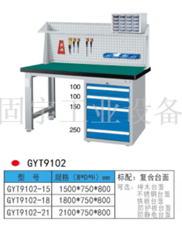 工作臺采用優(yōu)質(zhì)冷扎板精工制作而成,堅固的工作桌框架,牢固平穩(wěn),可使工作桌承重1000kg;多種工作桌面選擇,可配合不同使用的要求;工具吊柜(箱),側(cè)柜(箱)燈架,調(diào)節(jié)腳杯,,外形美觀;層板,抽屜質(zhì)量上乘,承重大,抽屜內(nèi)可根據(jù)需要任意分隔;節(jié)約空間,適用性強。 范圍 工作臺適合于模具、鉗工、檢測、維修、組裝等各種不同應用場合,具有良好的耐腐蝕性,耐臟性,抗沖擊性和承重能力強。桌面經(jīng)特殊處理,具有防腐、抗沖擊力強等特點,多種桌面的選擇,可配合不同的使用要求;所配置的抽屜、柜門方便使用者存儲工具;桌角上預留電源孔,方便安裝電源插座。工作臺(桌)分為輕型(可承重300公斤),中型和重型工作臺(桌)可承重1000公斤及特制的工作臺。可根據(jù)需要靈活地配置各種吊柜、單柜、雙柜等,可加裝掛板,電器板,燈頂板、調(diào)節(jié)腳杯,輪子,擱板等桌上部件,具有多種選擇,能夠滿足各種工位的需求。 工作臺材質(zhì)采用優(yōu)質(zhì)冷軋鋼板,表面采用靜電噴涂處理而制成,堅固的工作桌框架,牢固平穩(wěn),可使工作桌臺面均勻承重達到1000kg。桌面有多種材質(zhì)組成,適用于各行業(yè)辦公場所。可配合工具柜,吊柜,掛板,單開門柜使用。抽屜、承辦承重大,性能好,抽屜里可根據(jù)需求配置分隔條 工作臺分類:根據(jù)臺面的不同分為:櫸木工作臺、鋼板合成工作臺、防靜電工作臺、高分子工作臺;根據(jù)承重的不同分為:輕型工作臺、中型工作臺、承重型工作臺;根據(jù)功能的不同分為:多功能工作臺、帶吊柜工作臺等等。 臺面優(yōu)勢 復合臺面特性臺面平整度高,撓曲度為0.8mm。表面2mm厚度為高分子材料,使臺面耐酸堿、耐磨、耐油。臺面采用高壓纖維板,使臺面更具有抗沖擊性。特別的圓弧桌角,不易受撞擊損壞。高強度塑膠包邊堅固、實用、不易損壞、不易脫落。櫸木桌面特性桌板使用櫸木與防水膠經(jīng)加壓制造而成。表面光滑平整,美觀不易變型,耐油、耐熱、耐酸、耐堿,適合一般工廠作業(yè)與精密模具維修,儀器置放與檢測等用途。不銹鋼包面特性桌板使用高壓合成板,表面包1-2mm砂面不銹鋼板,以達美觀耐用。耐高溫、耐磨損、耐油、使用壽命長,為多功能桌板,適合一般工廠、食品業(yè)、研究室、電子廠無塵室使用。輕型工作臺可承重300kg-500KG防火板臺面特性輕巧、美觀、耐磨、防火。層壓板臺面特性工作桌面平整,變型小,強度高,抗沖擊性好。 標準顏色 產(chǎn)品顏色 標準的顏色可分為6種:淺藍色(RAL5015), 電腦灰(RAL7035), 機床綠(RAL6011),深藍色(RAL5017)。