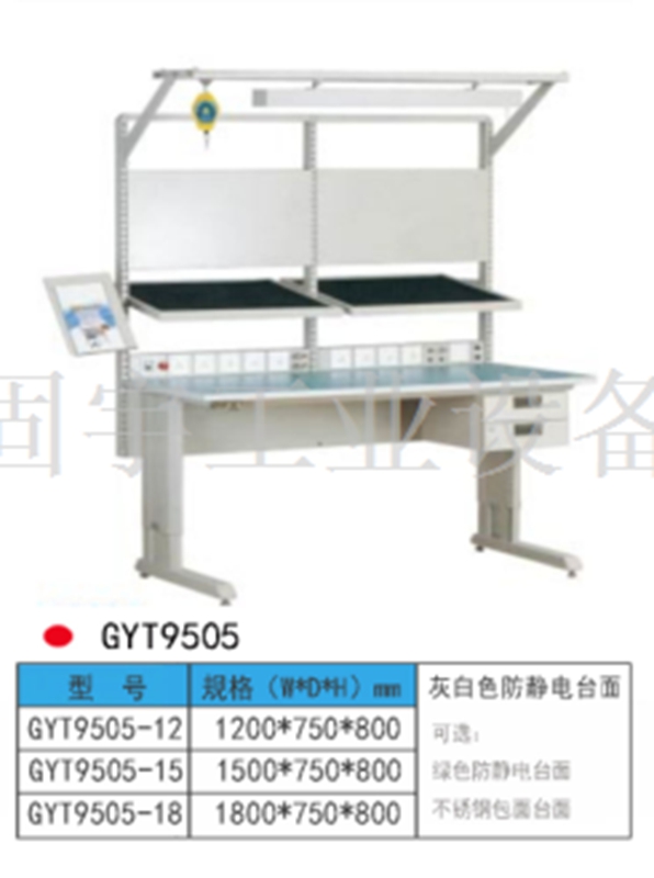 結(jié)構(gòu) 1、防靜電工作臺臺面一般由防靜電三聚氰胺高壓裝飾層壓板(俗稱防靜電防火板)為表面材料與木質(zhì)材料復合制成。木質(zhì)材料一般為刨花板,通過嵌入導電體如鋼柱,再通過接地線接地,這樣桌面靜電荷通過接電線順利地泄放到大地。2、也有一些工作臺是不銹鋼的,桌面需要鋪一塊防靜電桌墊,桌墊通過接點線連入大地,達到瀉放靜電的效果。3、防靜電工作臺就是能滿足用戶的普通工作臺功能的基礎(chǔ)上,增加了防靜電功能,也就是如何將靜電瀉放掉!潔凈工作臺 潔凈工作臺是一種層流局部空氣凈化設備,采用可調(diào)風量風機系統(tǒng),在調(diào)節(jié)風機工作臺后,可使?jié)崈艄ぷ鲄^(qū)的風速始終保持在理想范圍內(nèi)。(可根據(jù)客戶要求配備壓力表、可隨時掌握高效過濾器阻力變化情況。 工作臺結(jié)構(gòu)特點 可分為輕型,中型,重型工作臺。1、采用優(yōu)質(zhì)鋼板專用模具用輥扎工藝成型,并通過先進的自動化靜電噴涂工藝進行表面處理。 2、根據(jù)用戶的承載要求,可選擇不同形狀的桌腳。3、根據(jù)用戶要求,工作臺桌面可選擇:高分子復合桌面、防火板桌面、不銹鋼包面、鐵板合成面、櫸木桌面、橡木層壓板左面、防靜電桌面、電木板貼面等 。4、桌上可配照明架、吊架、擱板、方孔掛板、百葉掛板、動力電源插座、電器盒、零件盒掛條等,滿足用戶不同的需求。桌腳上預留安裝孔,方便客戶安裝電源插座。5、桌下可選配各種類型的工具柜,加裝工具柜后,更能合理地利用空間,存放保護工具。可直接在工作桌上加裝臺鉗。滿足用戶裝載物品的需求。6、各種類型的工作桌均采用組合式設計、拆裝組合容易且穩(wěn)固、耐用。